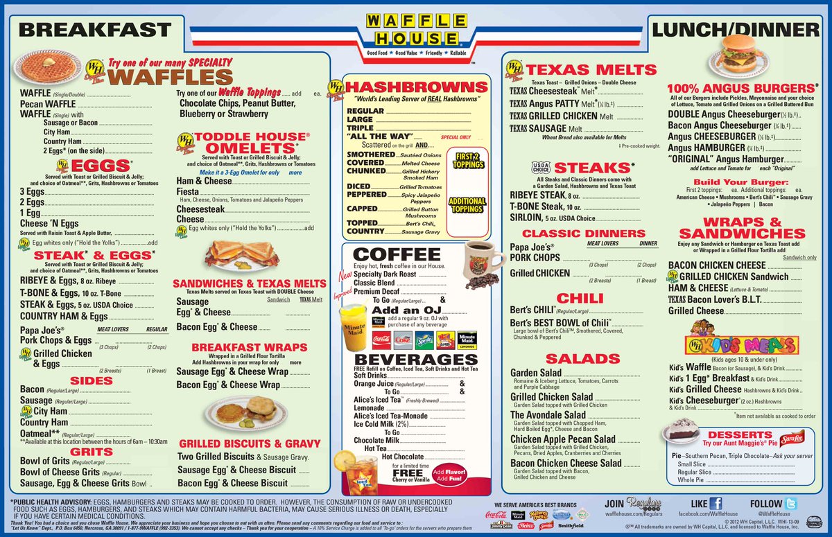 The Waffle House Menu Waffle House Menu Waffle House Special Occasion Food